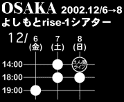 | 【大阪】 □チケットぴあ/06-6363-9999 □ローソンチケット/06-6369-6633 □よしもとrise-1シアター/06-6311-4347 |